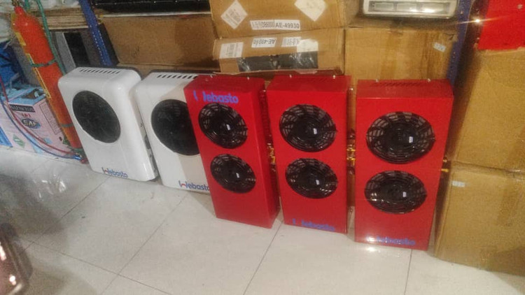 کندانسور کمپرسور برقی 12و24 ولت دوفن فلزی قرمز رنگ پک کامل